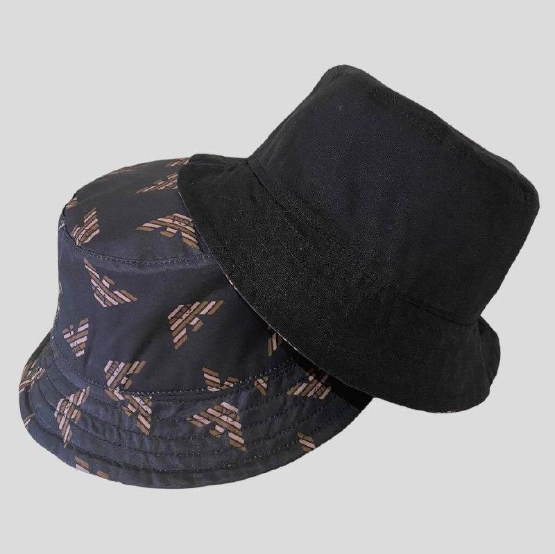 Двостороння літня панама Унісекс (Розмір 55-57) з принтом і однотонна, Чорна/Сіра з принтом