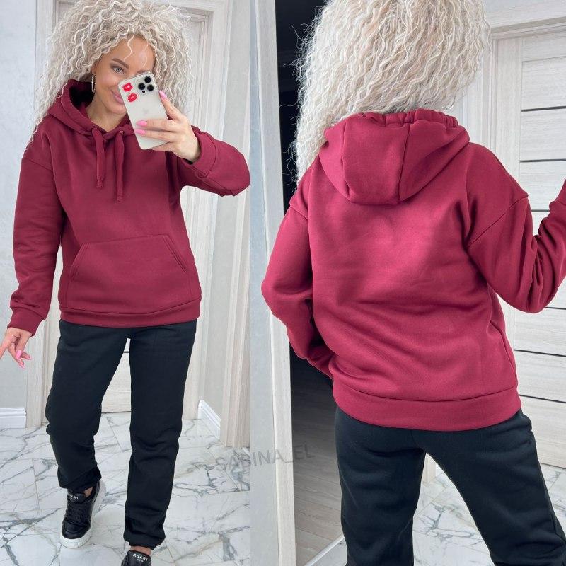 Жіночий базовий теплий костюм/комплект худі+джогери трьохнитка на флісі (Розміри 42,44,46,48,50,52), Бордовий